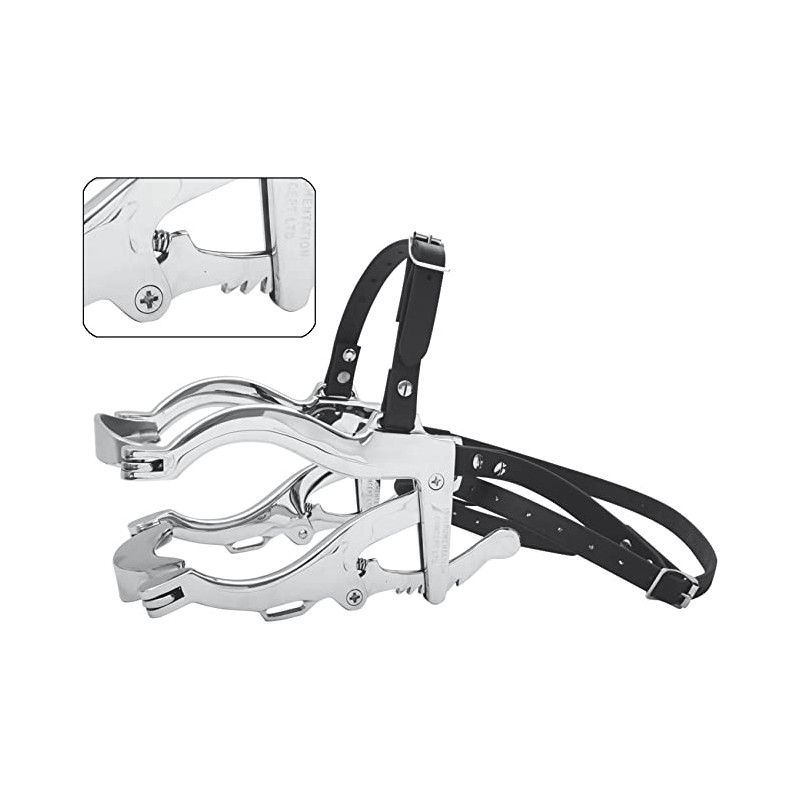 Este abrebocas de alta calidad está fabricado en acero inoxidable forjado con correas ajustables.