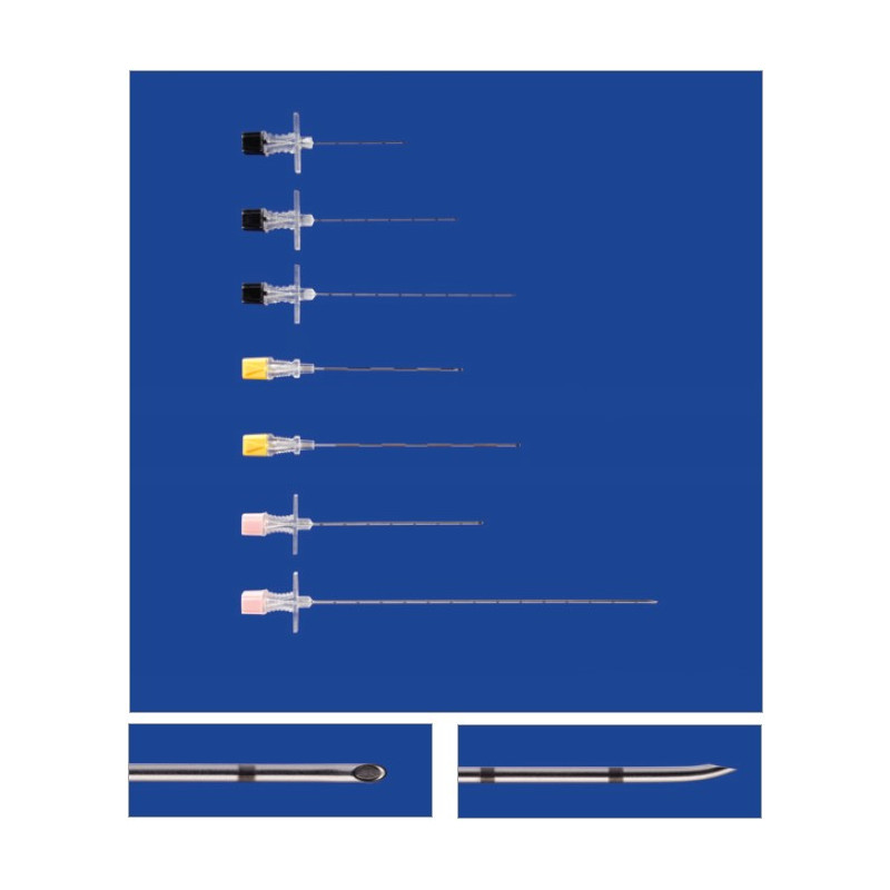 Agujas Tuohy con eje marcado y con muescas para una fácil orientación de la punta.