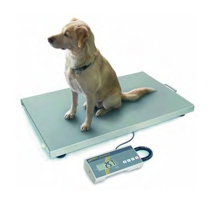 Manejo fácil y cómodo mediante 4 teclas. Con soporte mural del cabezal. Programa para pesar animales: Cuando el animal se mueve al pesarlo, se crea un valor medio estable con ayuda de la tecla HOLD. Este valor medio permanece "congelado" en el display hasta que se vuelva a pulsar la tecla HOLD. Tecla de tara. La báscula puede transportarse cómodamente gracias a las dos ruedas y su asa, así como guardarse ocupando poco espacio. Características: Capacidad: hasta 150kg / rango: 50g Plataforma inoxidable: 945x505x65 mm Cabezal de lectura con display LCD, dígitos 25mm. Dimensiones: 210x110x 45 mm Autoapagado en 3 minutos Estera de caucho antideslizante de 900x550 mm Alimentación red 240V o bateria con pilas, 6 x 1.5 V AA y con un tiempo de funcionamiento de 60 horas. Peso 18,8 Kg Garantía de 2 años Certificado DKD: 963-129