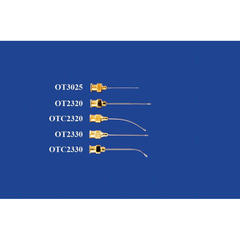 • Aguja de acero inoxidable con pequeña punta de oliva atraumática.
