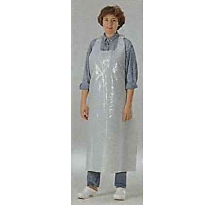Delantal desechable Plástico blanco, longitud 140 cm, 100% polietileno. No-estériles. Caja de 150 piezas.