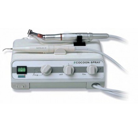 El módulo de ultrasonidos del Cocoon dispone de la tecnología piezoelectrónica de Satelec garantizando: Rapidez: la cavitación se alía a la eliminación mecánica de los depósitos de sarro. Control óptimo del instrumento: el módulo genera vibraciones lineales, de fácil control. Potencia: la frecuencia autorregulada de 27 a 32KHz y la retroalimentación (efecto feed-back) confiere al Cocoon una potencia muy superior a la de los detartradores neumáticos. Evolución: dispone, probablemente, de la gama más amplia de insertos. El módulo micromotor electrónico con spray externo o sin spray, le asegura: Velocidad autorregulada compatible con fresas diamantadas o de carburo de tungsteno: 40.000 r.p.m. en el eje del micromotor. En el caso del Cocoon Spray, enfriamiento por spray para evitar la necrosis de los tejidos y evacuar los residuos. El acople intramatic del micromotor es compatible con la mayoría de los instrumentos rotativos del mercado. El tallado de las cavidades, la preparación de las coronas, la colocación de pernos radiculares, se puede ahora realizar sin riesgo, gracias a este equipo compacto. Además, podrá usar el micromotor para pequeños actos de cirugía ortopédica o para el pulido después del detartaje. Se pueden utilizar para eliminación de cálculos las sondas de urolitiasis de perro y gato. Incluye: Consola de mando. Pieza de mano esterilizable. Soporte. 3 insertos Nº 1, Nº 2, Nº 10P y llave. Micromotor de 40.000 r.p.m. con soporte. Pedal desconectable. Tubo para agua. Contra-ángulo 1:1.
