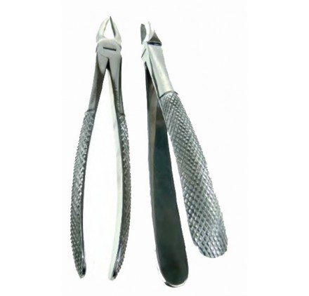 Fórceps Extractores Acodados/Curvos- Boca Ranurada y Estriada. Acodado Sobre el Frente. Para Fragmentos de Incisivos y Caninos Superiores.