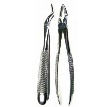 Fórceps Extractores Acodados/Curvos- Boca Ranurada y Estriada. Acodado Sobre el Frente. Para Fragmentos de Incisivos y Caninos Superiores.