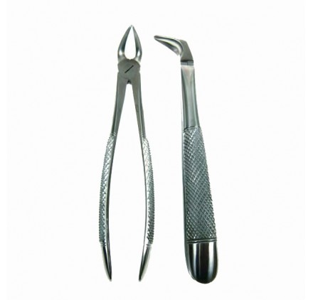 Fórceps Extractores Acodados/Curvos- Boca Ranurada y Estriada. Acodado Sobre el Frente. Para Fragmentos de Incisivos y Caninos Superiores.