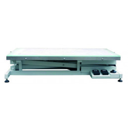 Tiene un accionamiento de pie y un brazo doble. Su estructura de elevación eléctrica es muy estable y le ofrece una zona de trabajo segura y ligera. La superficie del tablero es antideslizante y transparente, no le afecta a la luz que hay debajo, haciendo que la superficie sea más segura para las mascotas que están de pie sobre ella.