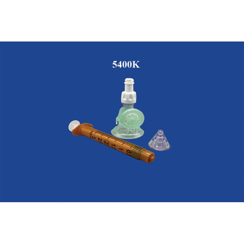 El kit para uso doméstico (artículo 5400K) incluye el atomizador nasal VetJet™, una jeringa ámbar de 3 cc y un pasador dispensador con filtro de aire de 0,2 micrones para acoplar al vial de medicación.