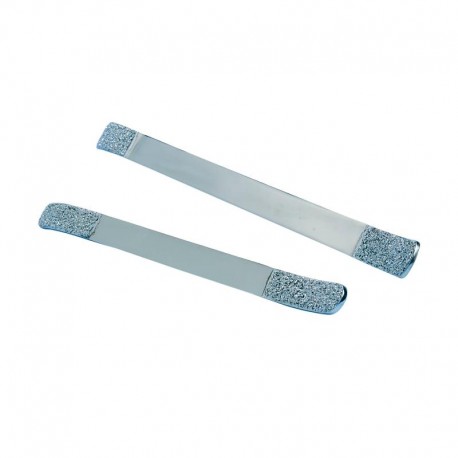 Acero inoxidable con virutas de carburo de tungsteno en ambos extremos y solo en un lado para evitar lesiones en la mucosa bucal y lengua.