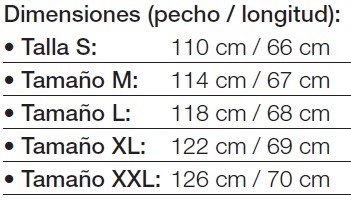 Con manga corta y cuello recto. Apertura total de la cremallera. 2 bolsillos laterales con cremallera.