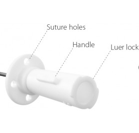 * Placa base flexible con orificios de sutura que permite fijar el catéter al prepucio