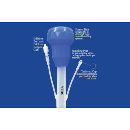 - Conector de embudo diseñado para adaptarse a casi todos los sistemas de respiración de grandes animales.