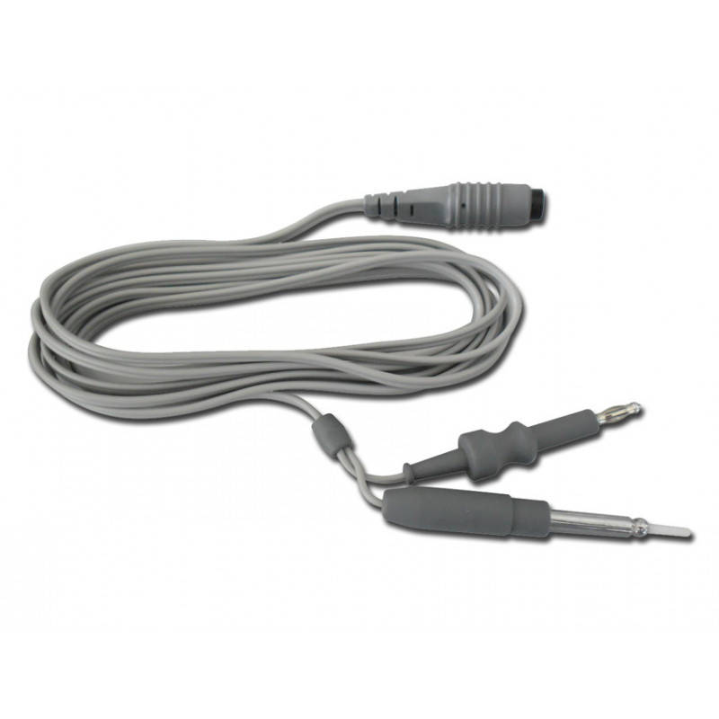 Cable bipolar de silicona de calidad, muy flexible. Autoclavable a 134°C hasta 20 veces, 3 m de largo (10"). Apto para la mayoría de los generadores, con conector para pinzas europeas.