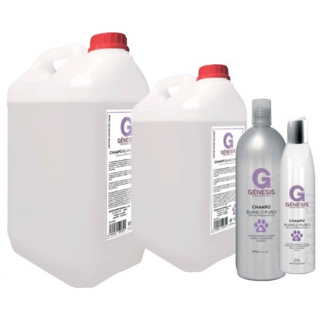 Champú especialmente formulado para blanquear intensamente todo tipo de mantos, ya sean duros o porosos, desde el primer lavado. Sus componentes naturales hacen que los mantos no se resequen con su uso continuado. Actúa como filtro solar evitando el amarilleo producido por la exposición al sol. No reseca la piel. Retrasa la aparición de nudos. Perfume Sandía. Concentrado. Ph: 7,4. Agitar enérgicamente antes de utilizar.