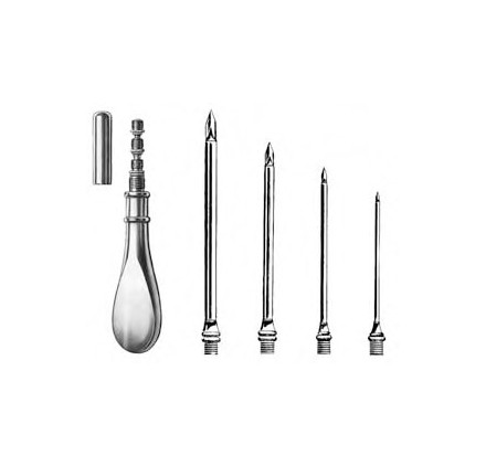 Trocar tornillo modelo Buff de 13,5 cm largo y estilete de metal.