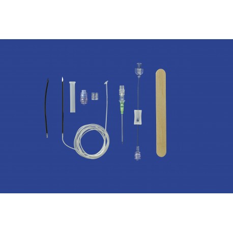 • El kit incluye un trócar 12Ga recto o en ángulo de 10 °, un catéter, un elevador de párpados, un tubo de extensión, un adaptador Luer Lock, un depresor de lengua, un catéter para la infusión de medicamentos y un puerto sin aguja.
